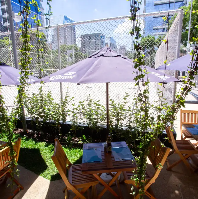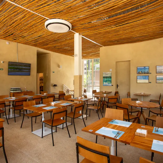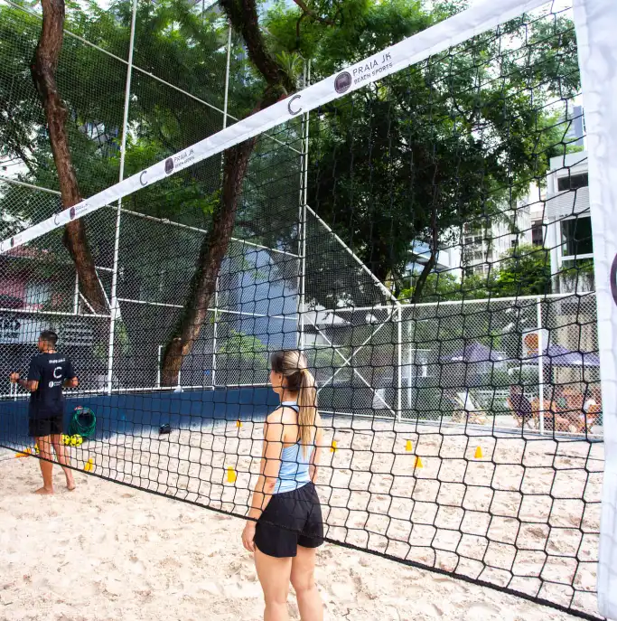 Contamos com quadras de beach sports, professores qualificados e restaurante de alimentação saudável